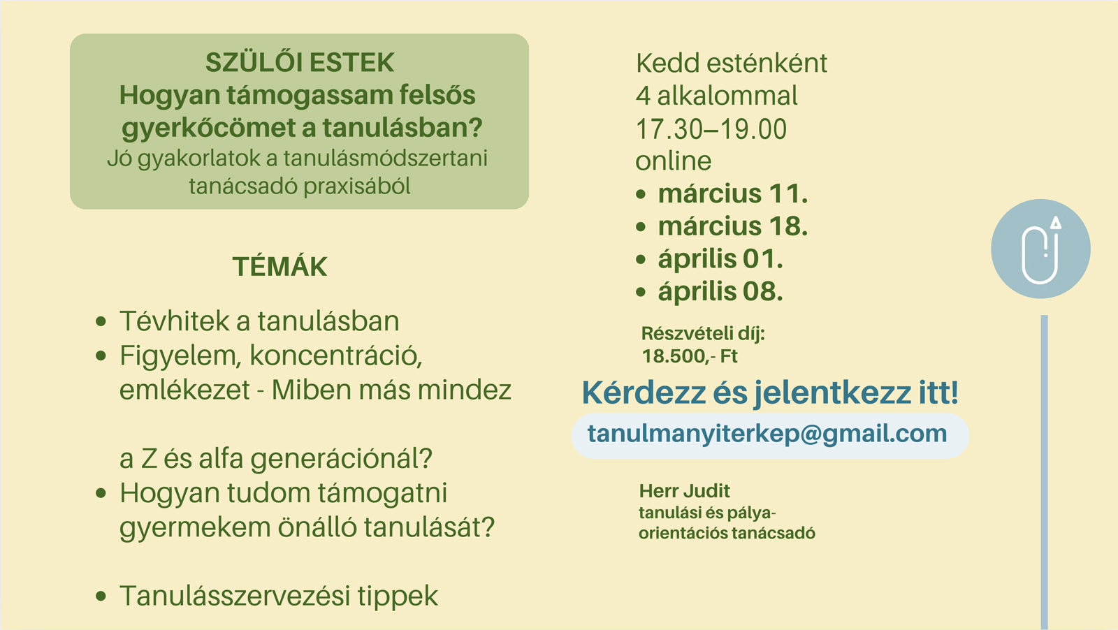 Herr Judit vagyok - Tanulásmódszertani, továbbtanulási és pályaorientációs tanácsadó, mentálhigiénés szakember